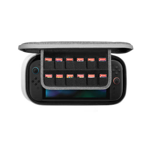 Elegantan i izdržljiv carrying case za Nintendo Switch 2 (model 2025), namenjen bezbednoj zaštiti konzole tokom putovanja, skladištenja ili svakodnevne upotrebe. Kućište je napravljen sa tvrdom spoljašnjošću i mekanom unutrašnjošću, uključuje mesto za do 12 kartica igara i dodatni prostor za osnovne dodatke kao što su kablovi ili punjač. Pogodan je za distributere gejming dodataka, prodavnice konzolnih proizvoda i online kataloge.