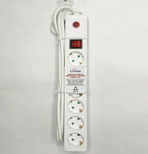 Kabal produžni Linkom 6r/5m sa prekidačem i zaštitom beli